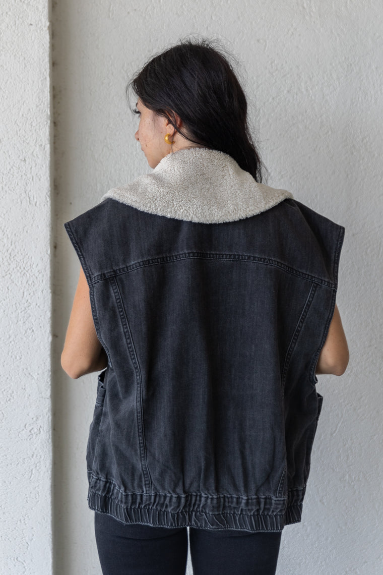 BLANKET STITCH PATCH POCKET DENIM VEST