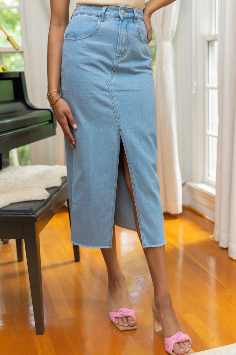 Style Tip: Pair this denim wrap skirt with a fitted white tank and sneakers for an effortless daytime outfit, or dress it up with a silky blouse and strappy heels for a night out look that’s chic yet laid-back.