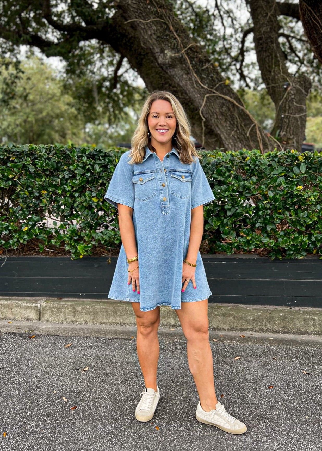 Style tip: This denim dress brings an essential elevated feel to everyday dressing, blending structure with effortless ease. Style this dress with heeled boots and a crossbody for polished daytime plans, or pair this dress with a tailored jacket for a modern, put-together look.