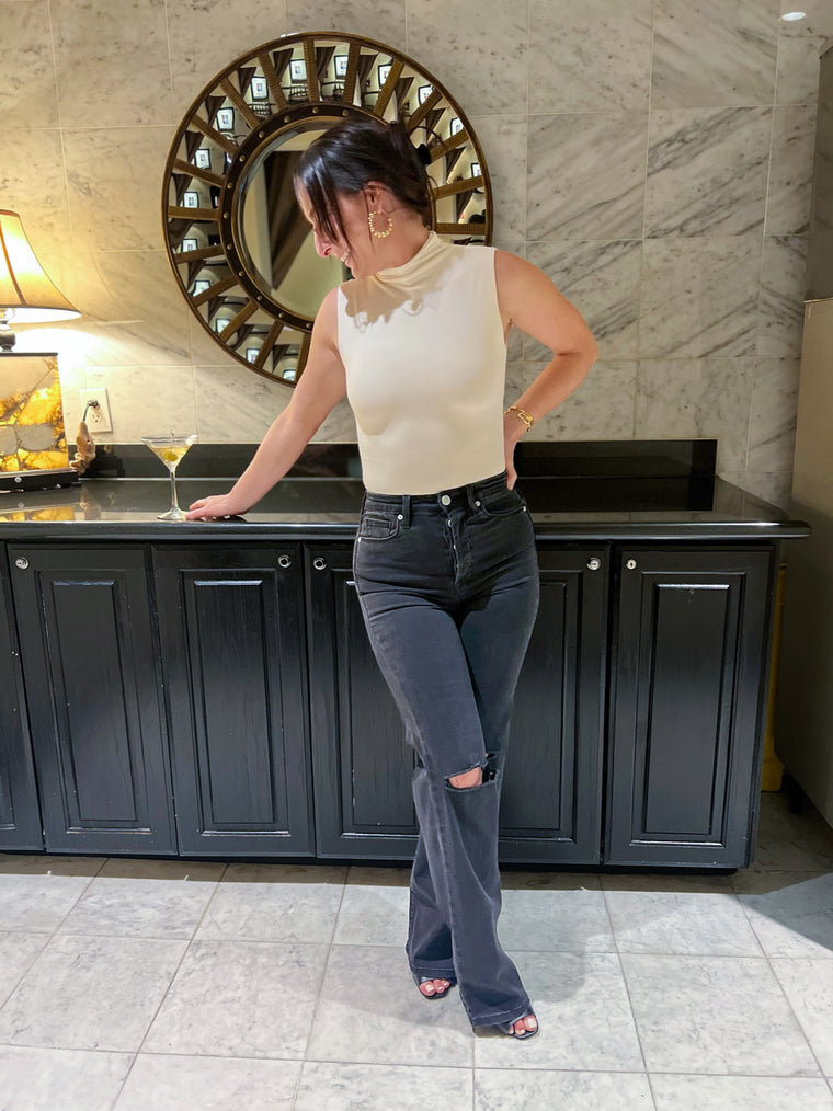 MID-RISE BOOTCUT JEANS – BLACK