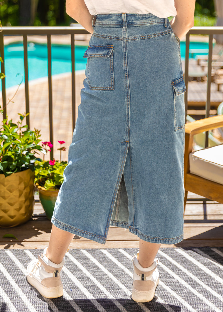 NISE BLUE JEAN SKIRT – MODERN WRAP STYLE IN CLASSIC DENIM