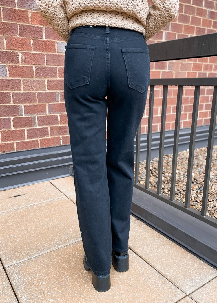 Style Tip: Step into fall sophistication with these black hidden pocket trouser jeans—pair them with a structured blazer and pointed-toe heels for a chic office-to-evening look, or dress them down with a chunky knit and loafers for effortlessly elevated weekend style.