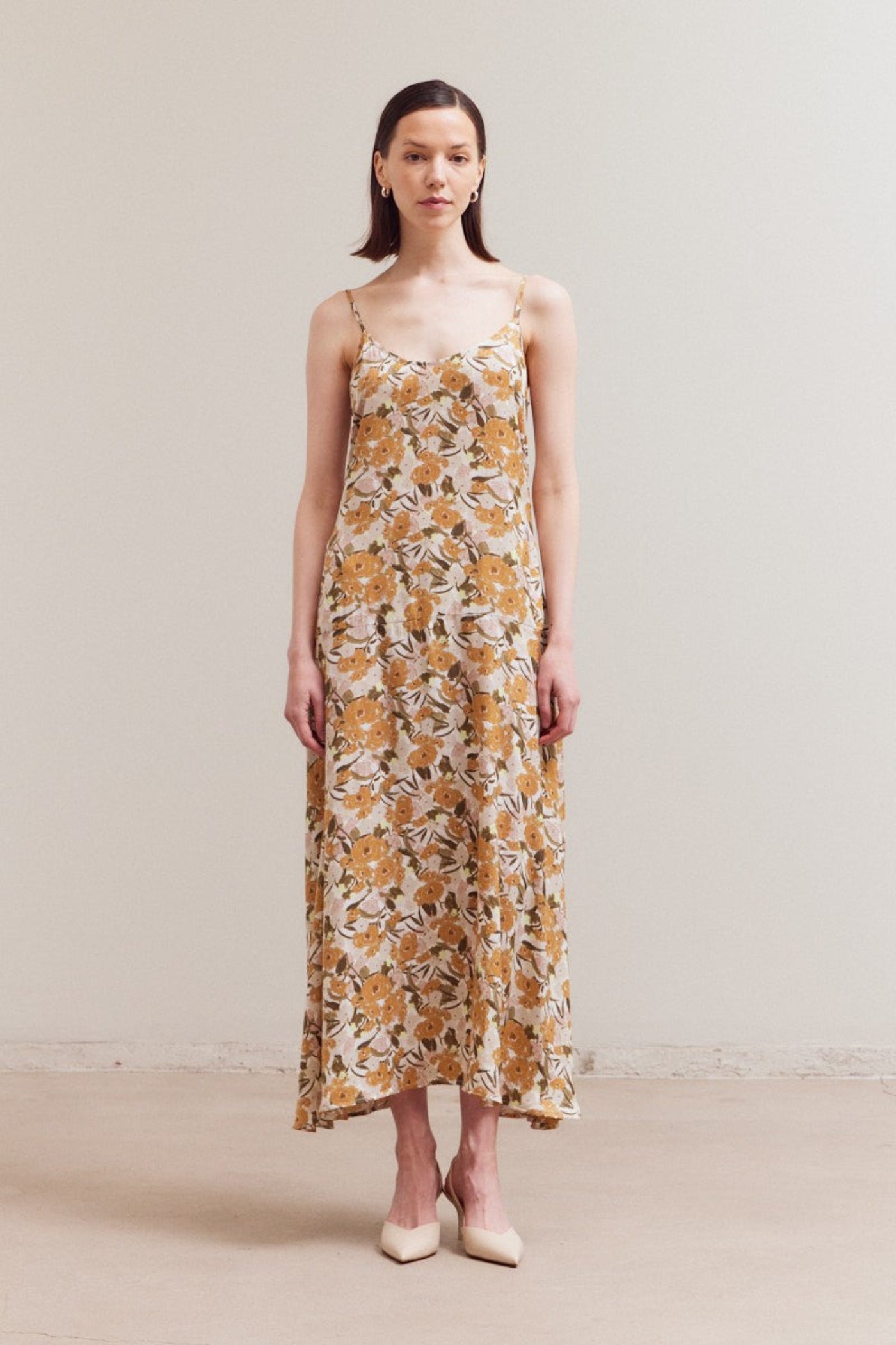 BORDER PRINT CAMI DRESS – A FLOWY MAXI DRESS WITH INTRICATE BORDER PRINT AND DELICATE STRAPS