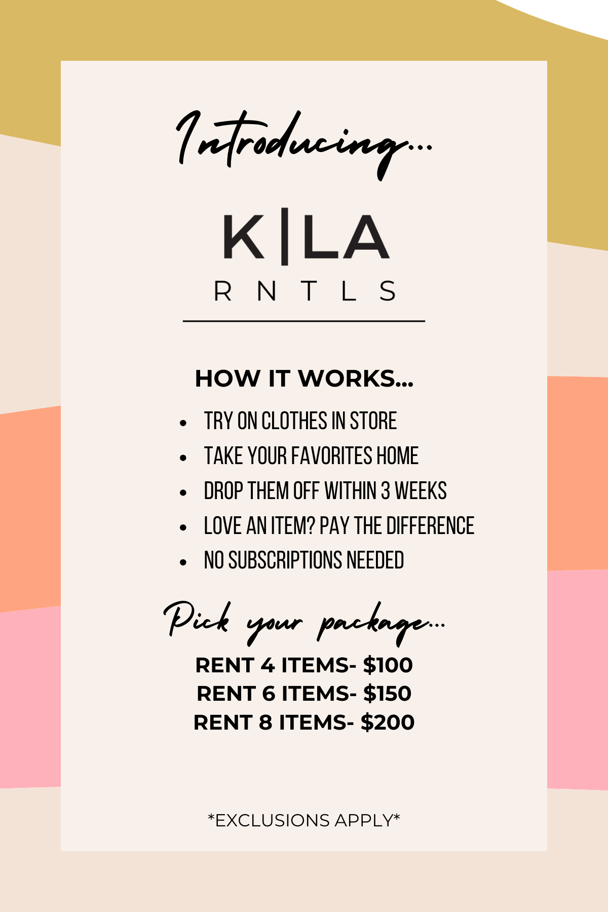 You can now try on BEFORE you rent! Shop in stores to learn how you can rent 4-8 items for 3 weeks, and only $25 each. Our amazing Stylists can help put together looks for your next vacation, wedding, or any special event.